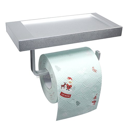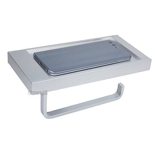 YoungE Frosted Aluminum Multifunction Toilet Paper Holder,Bathroom Paper Tissue Holder with Mobile Phone Storage Shelf(Silver)