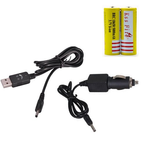 KssFire® New Car Charger,USB Charger USB Charging Cable,2Pcs KssFire 18650 5000MAH Battery Set for Cree LED Rechargeable Lighting Flashlight Cree T6 U2 L2 Q5 LED Lamp Headlight Headlamp Bike Light Bicycle Lighting Torch Powered by 18650 Battery B00RX