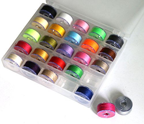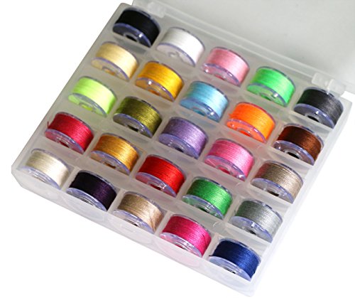 Penta Angel 25PCS Plastic Sewing Machine Bobbins & Assorted Colors Thread with Transparence Case Organizer and Small Pink Scissor for Brother Singer Babylock Janome Kenmore Elna