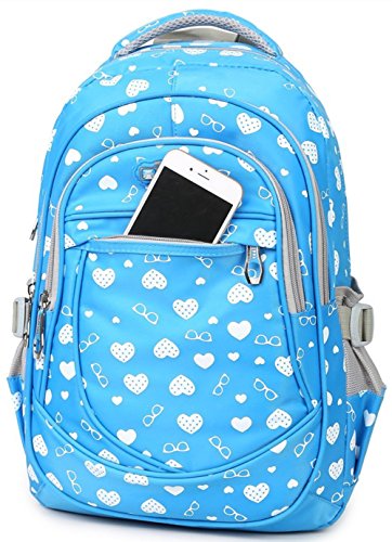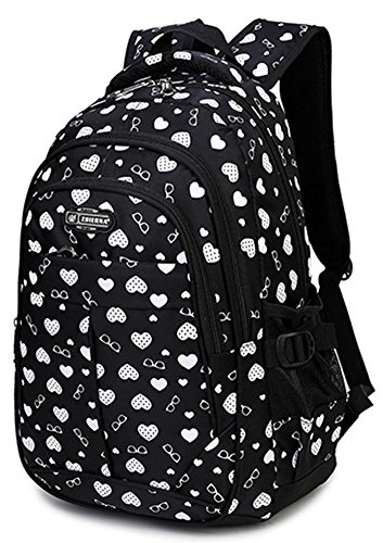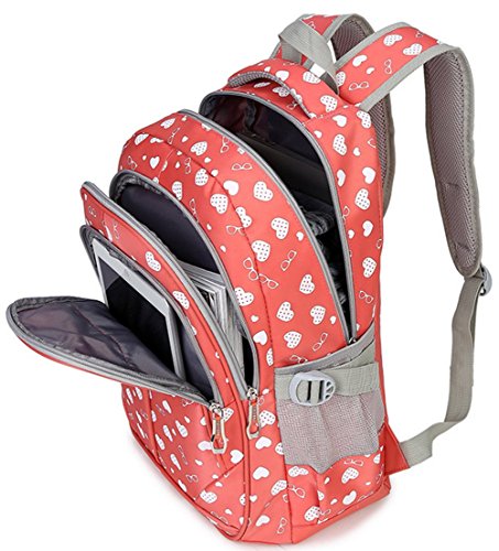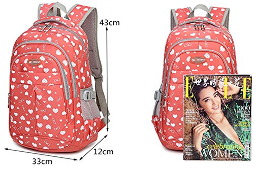 -. Feature : Material: Nylon,Durable Polyester Lining;Anti-scratch and Waterproof / Size: 13.0(Length)×16.9(Height)×4.7(Thick) inch;Net Weight: 630g / High elastic foam adjustable shoulder strap,breathable,reducing the burden / Multi pocket design,clear classification and storage of goods.Stationery,umbrellas,books,toys,clothes can be carried easil / Package Include: 1 x Teen Girls Love Heart P.R.Inting Backpack