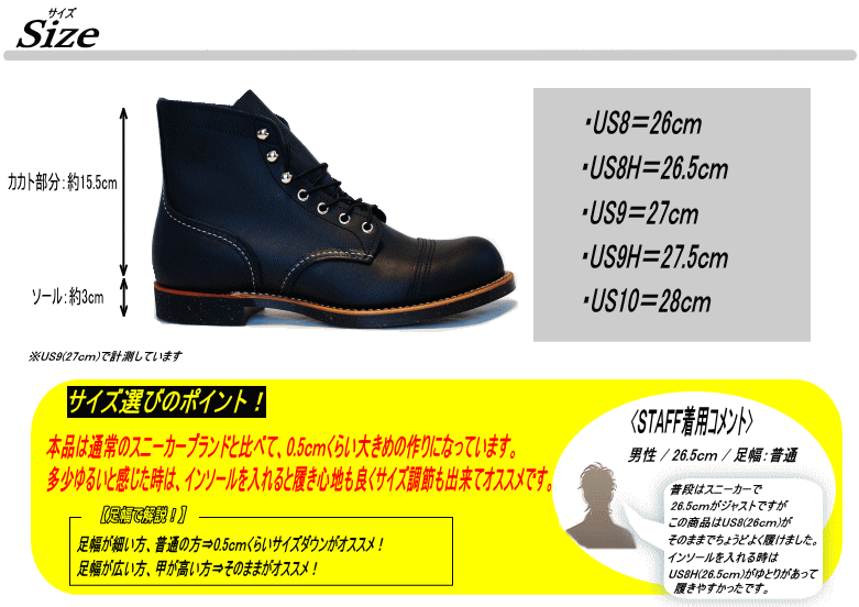 | 商品説明 | <BRAND STORY> 創業100年を超えてなお,良いものだけを作るというこだわりを持ち続けるレッドウィング。現在でもメイドインUSAで生産され続け、世界中のワークブーツを代表するブランドとなっています。 <ITEM INFO> ・レッドウィングワークブーツの人気アイテム「アイアンレンジブーツ」。 ・履き込むほどに味が出るレザーが最高。 ・キャップド・トゥーと呼ばれるデザインとヒール付きのコルクソールを組み合わせたカジュアル,フォーマルと様々なシーンで活躍できる一足です。 ・アイリッシュセッターやベックマンでは満足できなくなった方にもオススメです! |