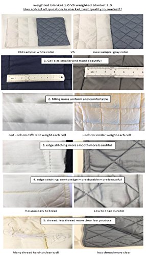 Unique:Diamond pattern inner Layer,small pocket,strong sweing,Which make the blanket weight distribut even and more duarable.Filled with clear glass sand,which is more confortable and quiet than polly beans.