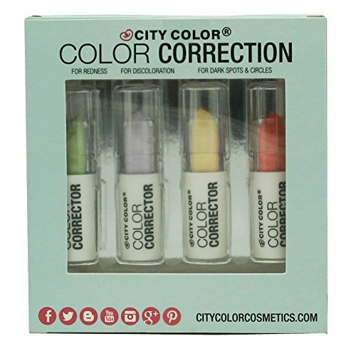 -. Binding : Misc. -. Brand : city color -. EAN : 0849136006353 -. Feature : CITY COLOR COLOR CORRECTION / CREAMY PARABEN AND OIL FREE CORRECTING STICKS / For Redness / For Discoloration / For Dark Spots & Circles -. IsAdultProduct : 0 -. ProductGroup : Beauty -. ProductTypeName : BEAUTY -. Title : CITY COLOR 4 pc Color Correction -. UPC : 849136006353