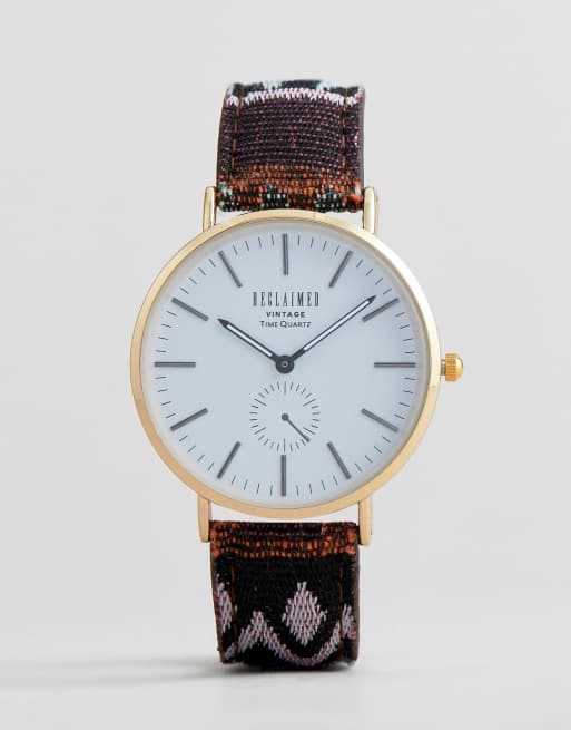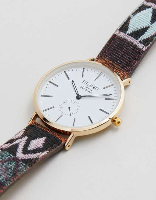 Reclaimed Vintage Inspired Geo-Tribal Print Strap Watch In Multi Exclusive To ASOS