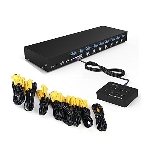 RIJER 8 Port Manual Smart VGA USB KVM Switch PC Computer Selector 1 KM Combo Controls 8 Hosts with Extension Switcher and original Cable 801UK