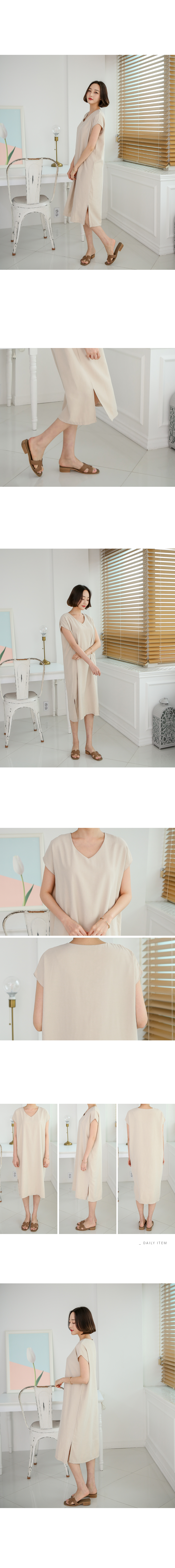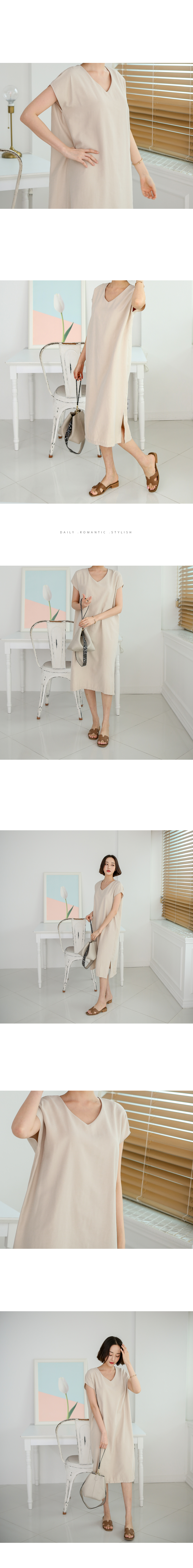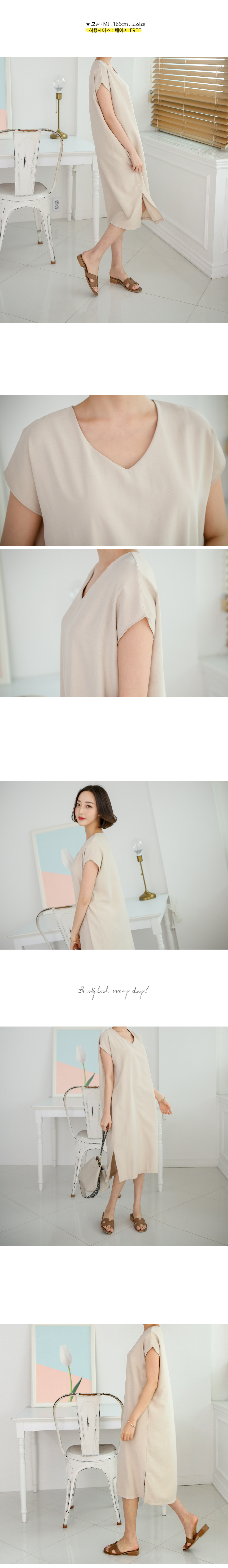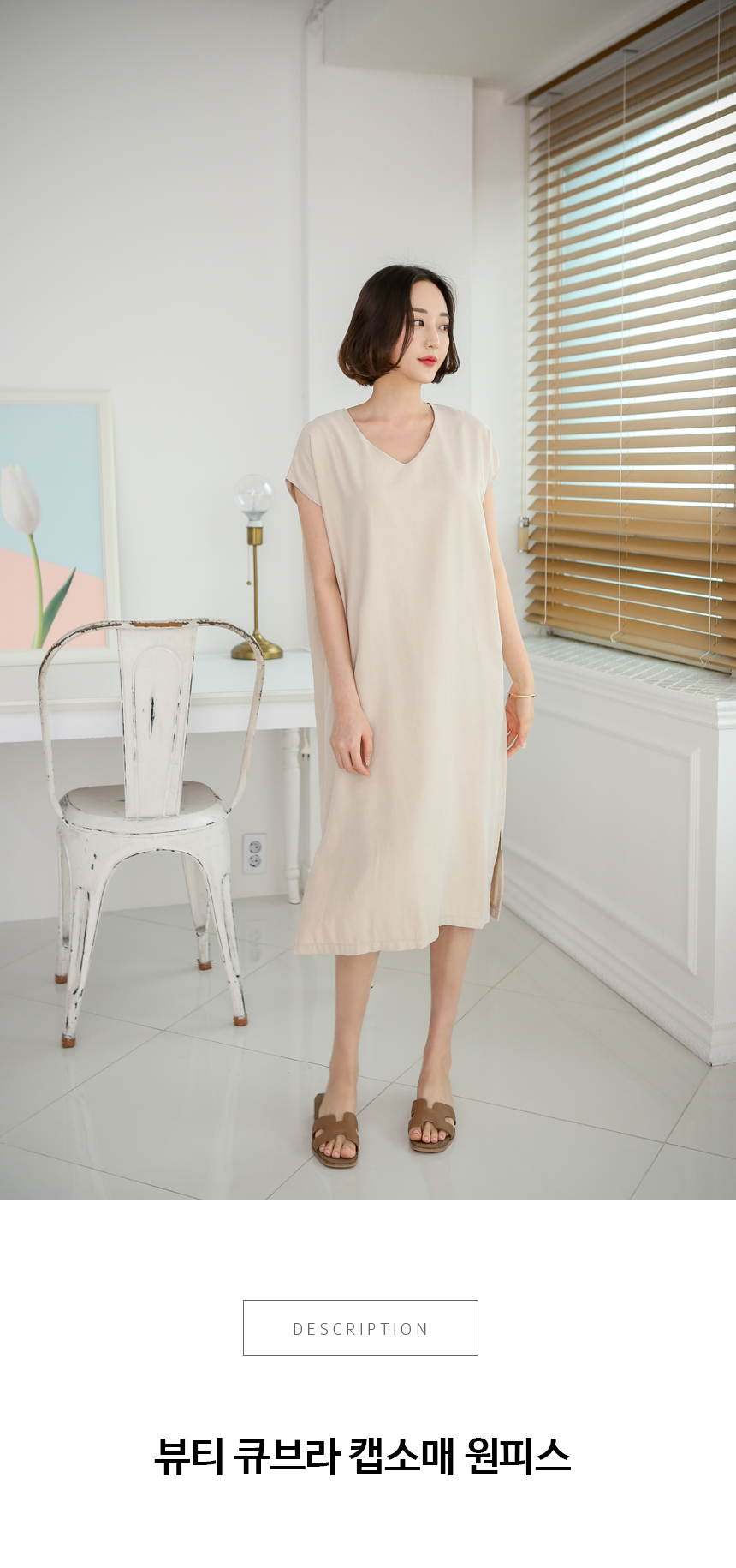 단정한 브이넥과 어깨를 감싸며 떨어지는 캡소매 라인에