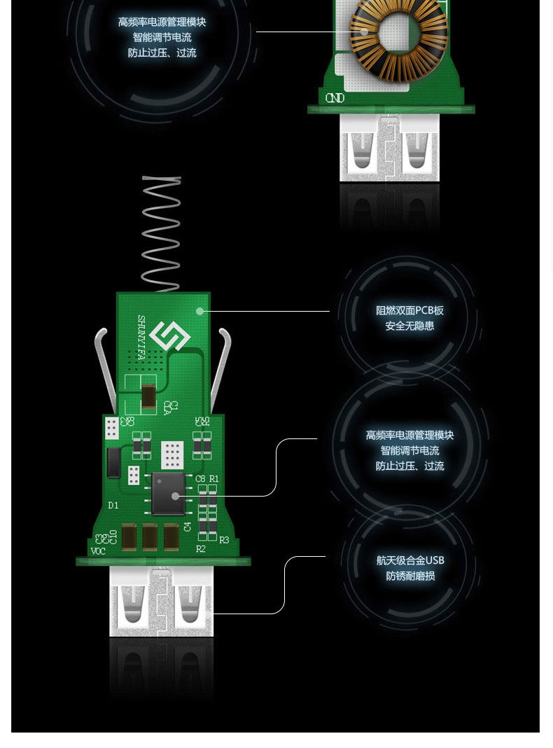 1. Dual USB jack: equipped with dual USB port, you can also plug two chargers to meet your needs at different times, more intelligent distribution of current;