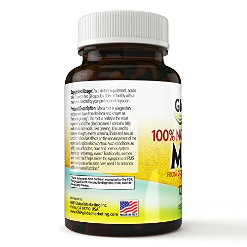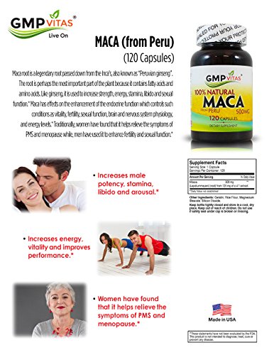 GMP Vitas® Premium Natural Peru organic maca root capsules Increase Libido, Improves Vigor, Enhances Stamina 500mg, No Side Effect 120 Capsules....