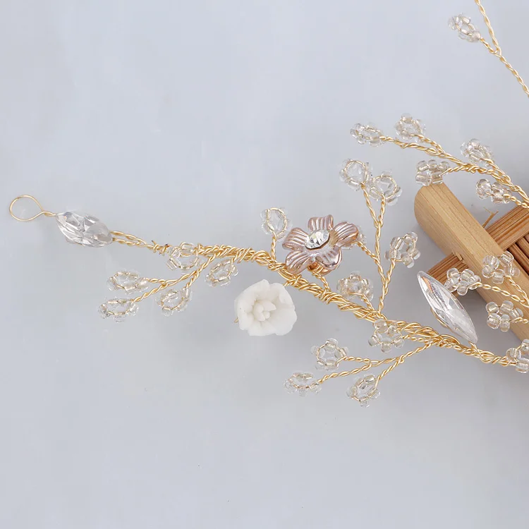 Headpieces material:Cooper wire,crystal,freshwater pearls,farbic flowers,opal
