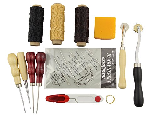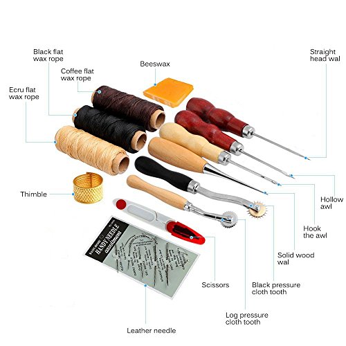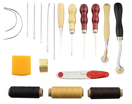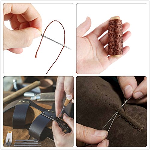 Obecome 13Pcs Leather Craft Tools,Craft Leather DIY Hand Stitching Sewing Tool Set Including Thread Awl Waxed Thimble Kit