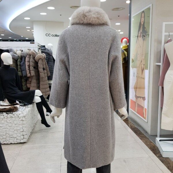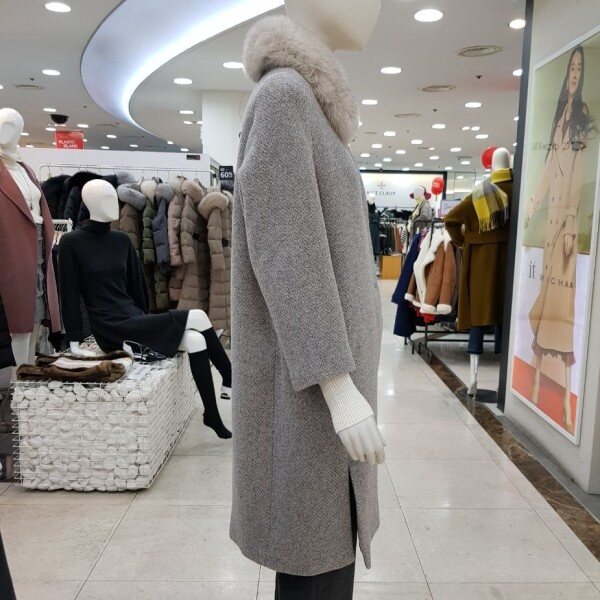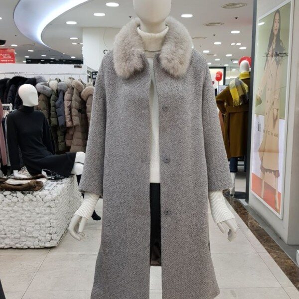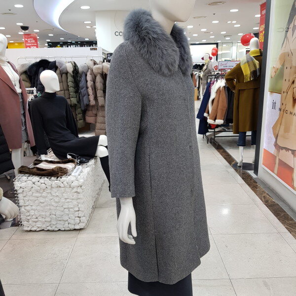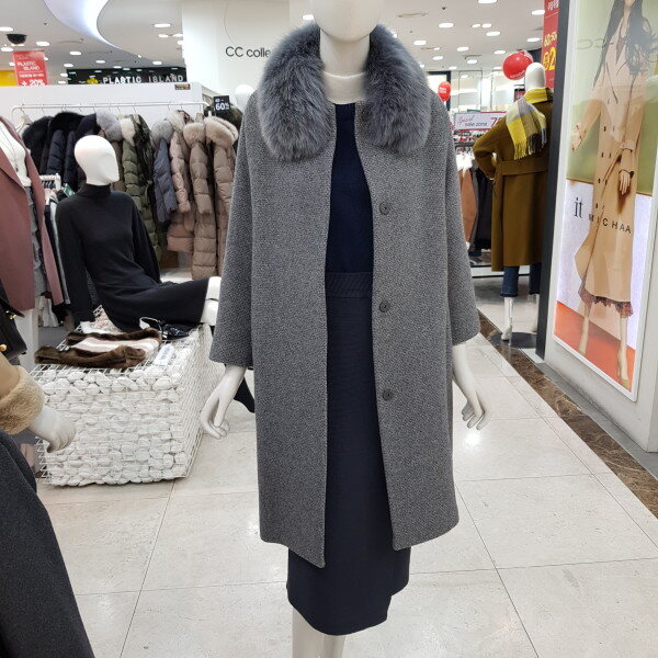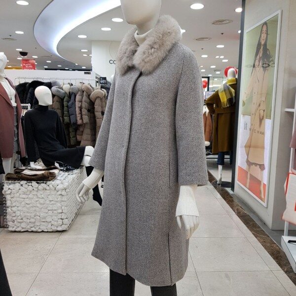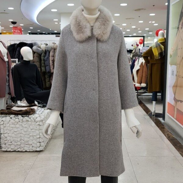 퍼 카라가 탈부착이 가능한울 혼방의 코트입니다.퍼 카라를 제거 하고 입으면라운드넥 코트로 입을 수 있는 디자인입니다.퍼가 분리가 되어 실용적으로활용이 가능한 디자인입니다.고급스러운 디자인으로 멋스럽게 코디하기 좋은하이퀄리티의 코트 입니다. 색상 : 베이지, 그레이 사이즈 : 55, 66