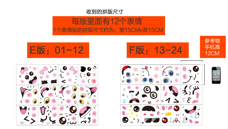 Material: environmental protection PVC, back with plastic Style: simple and modern Pattern: Cartoon animation Pricing Unit: set Paste style: flat wall stickers Size: Please refer to the effect of detailed dimensions (unit: cm) Sizes, "you receive the imposition compact size" and "Collage good size reference" Our tile size for reference only, you can combine according to room size freedom