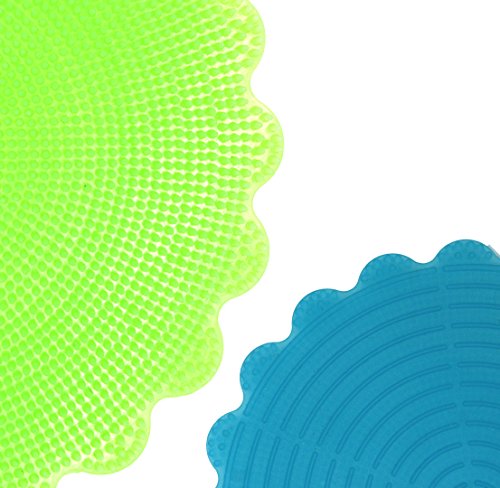 Flower shaped scrubbers have a multi-surface design which allows for versatile usability- BRISTLE SIDE: Superior scrub action silicone bristles ideal for cleaning aid in kitchen, bathroom, table tops, and more! INSULATED SIDE – Heat resistant up to 500 F. Ideal for transferring hot pots, oven baking sheets, and more!