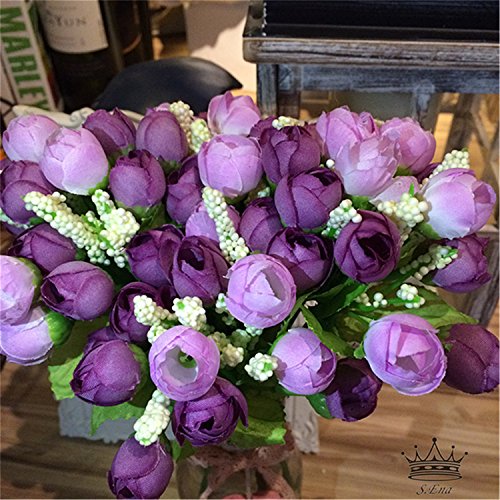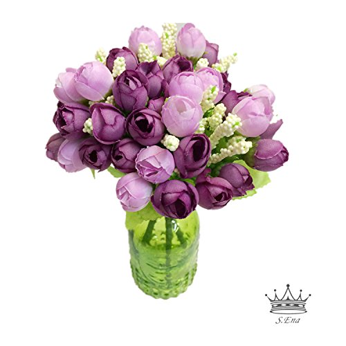 - *BEAUTIFUL & ELEGANT: S. Ena Artificial Silk Fake Flowers with 5 stems and 15 flower heads, each flower measured approx. 0.78'' in diameter, Bunch dimension approx.: 10.2" H x 5.9"W.