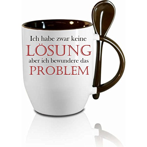 -. Title : Tasse m. Löffel" Ich habe zwar keine Lösung - aber ich bewundere das Problem " Löffeltasse, Kaffeetasse mit Motiv,Bürotasse, bedruckte Tasse mit Sprüchen oder Bildern - auch individuelle Gestaltung nach Kundenwunsch
