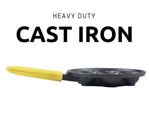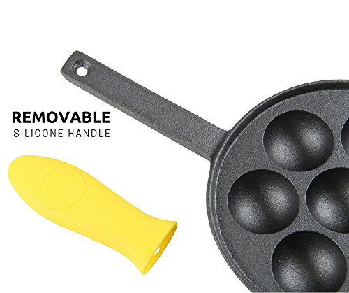 Upstreet's cast iron aebleskiver pan is scratch resistant and easy to clean. It weighs 4 lbs.