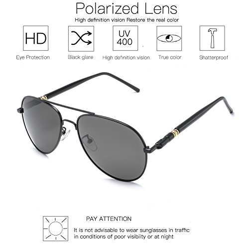 -. Feature : MEASUREMENT - Lens Height: 50mm (1.97 inches) Lens Width: 57mm (2.25 inches) Nose Bridge: 20mm (0.79 inches) Temple Length: 130mm (5.12 inches) Lens Frame Length: 140mm (5.51 inches) / HD POLARIZED SUNGLASSES -100% UV400 Protection Sunglasses. Filter out 99% of reflected glare without haze or optical distortion.Have a outdoor polarized sunglasses can protect your eyes ,it's also a great fashion accessories for men and women / POLYCARBONATE POLARIZED LENS, HIGH QUALITY FRAME - The polarized sunglasses made with only the highest quality pilot alloy materials to ensure durability and avoid breakage while engaging in sports and outdoor recreational activity such as driving, fishing, skiing, travelling, hiking, boating, and is suitable as high fashion accessory and daily wear all year round. / EXQUISITE GLASSES CASE PACKAGE - The anti-pressure box can ensure the sunglasses safety of transport. The screwdriver and polarizing card can help you know more about the sunglassses .The screwdriver can help you solve some small issue . / RISK FREE PURCHASE - All Sunglasses is backed by a LIFETIME warranty on frames and lens as well as a 30-Day Money Back Guarantee when purchased from authorized dealers. So if you are not completely happy with your purchase for whatever reason, we'll do whatever it takes to make it right.