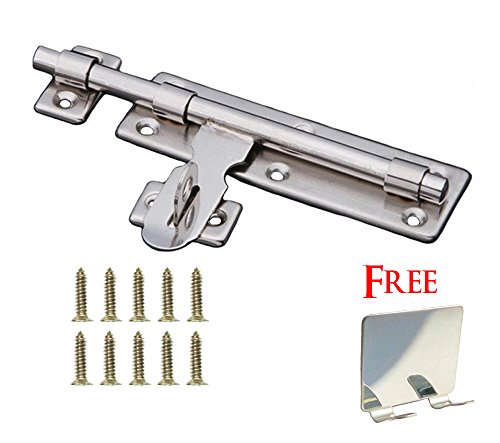 -. Feature : Material : Stainless Steel / Total Size : 16 x 8 cm / 6.3" x 3.15" (L*W);Mounted Hole Diameter : 4mm / 0.16" / Net Weight : 5.36 oz (159 g) / Package Includes: 1 set Door Lock Latch Slide Barrel Bolt + 10 X screws / Complimentary:1 Stainless Steel Adhesive Mirror Wall Mount Hooks