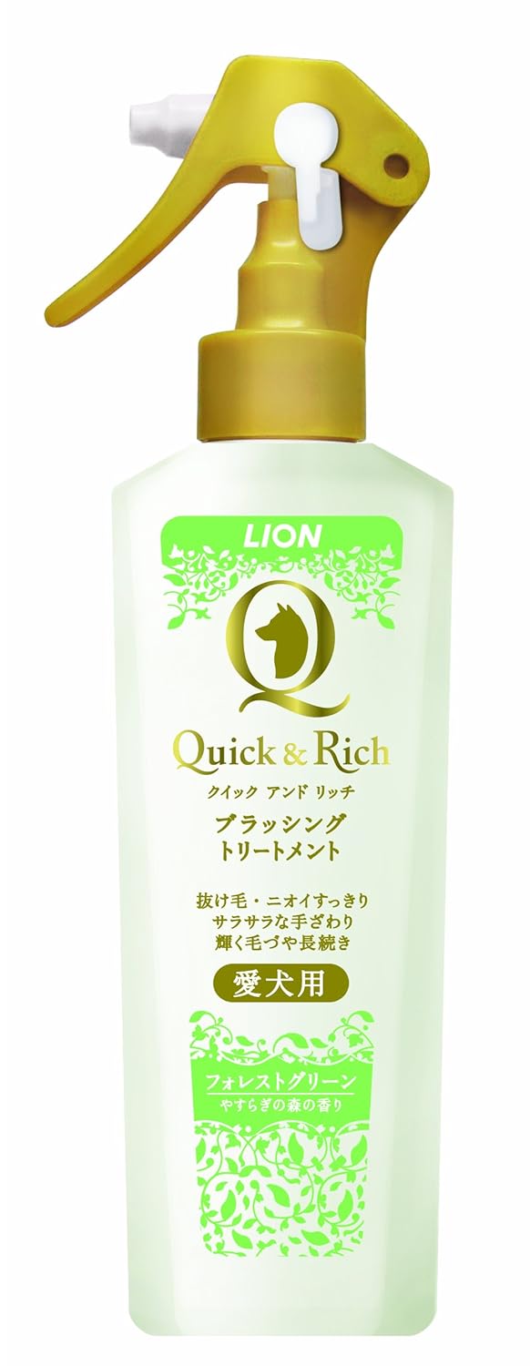 精製水、エタノール、トリートメント剤(ミクロシリコーン)、シルクプロテイン、ローヤルゼリー、保湿剤、被毛保護剤、クエン酸、香料
