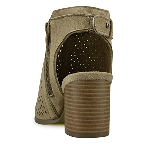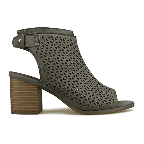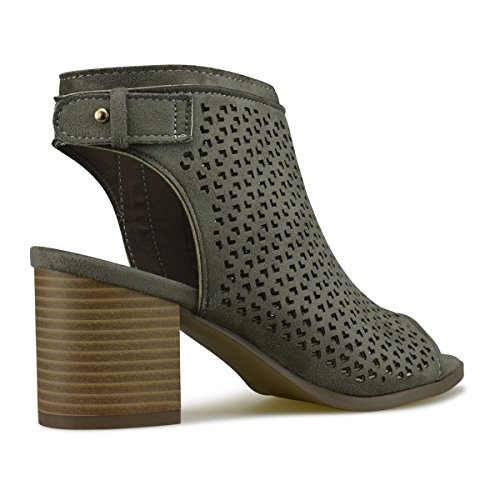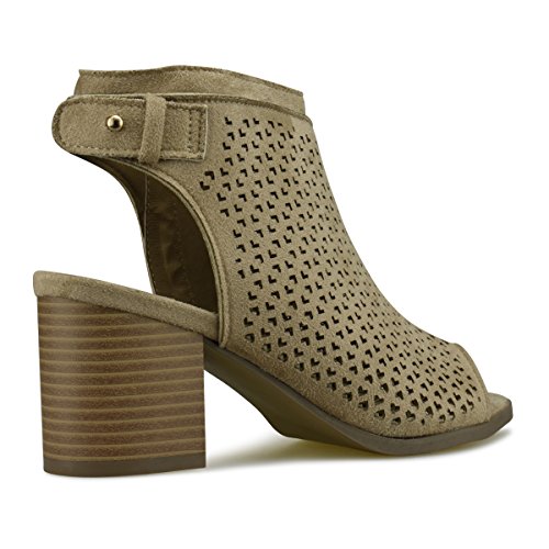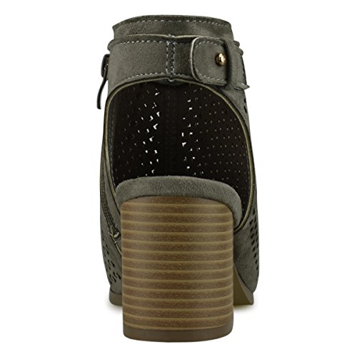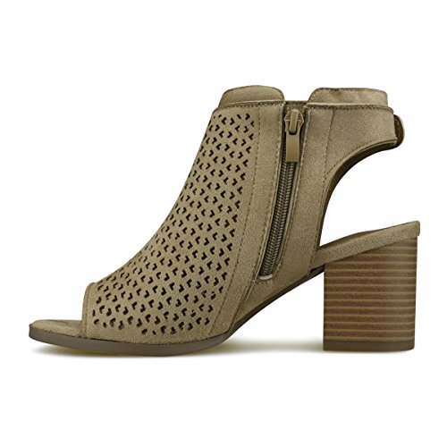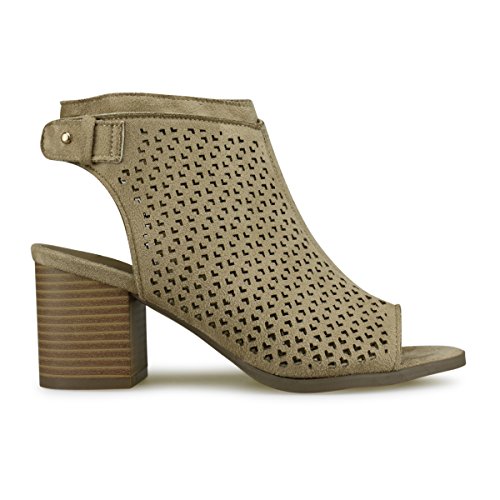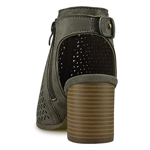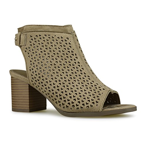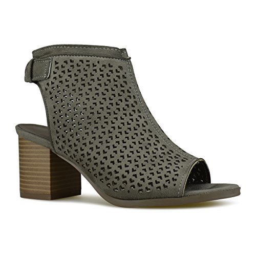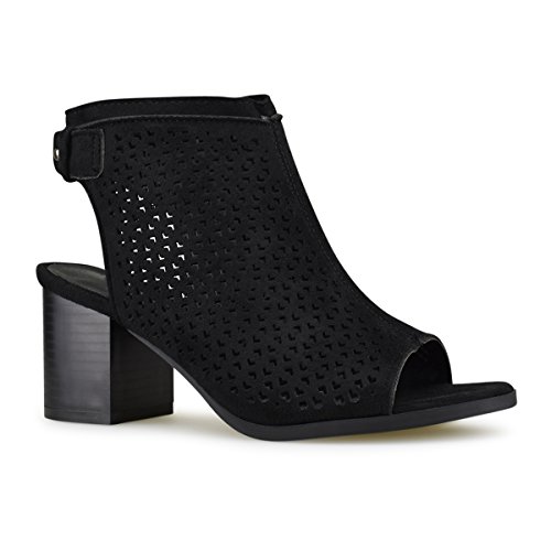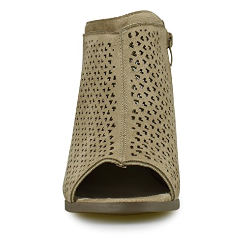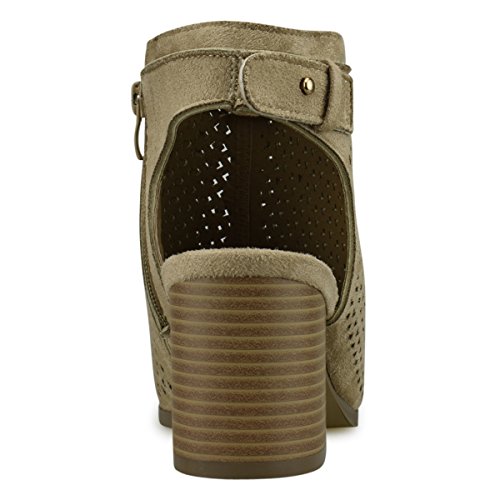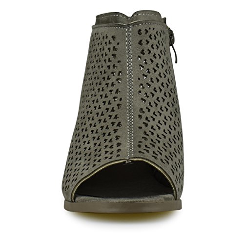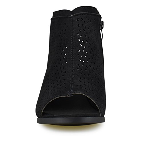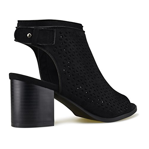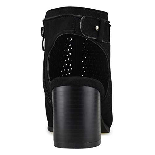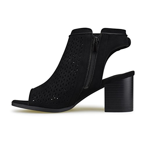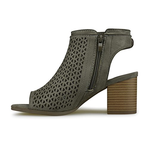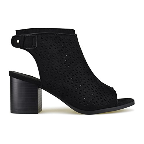 Premier Standard Women's Perforated Cut Out Heeled Bootie - Faux Leather Pull On Boot - Women's...