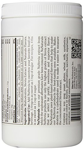NuNaturals NuStevia White Stevia with Maltodextrin Powder, All-Purpose Sweetener with No Calories, 12-Ounce