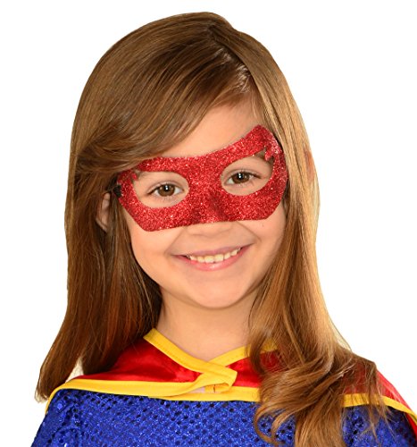 -. Binding : Toy -. Brand : Imagine by Rubie's -. EAN : 0048229029488 -. Feature : Red glitter eye mask with elastic band and Velcro closure / Measures 6.5-inches, temple to temple / Officially licensed DC Comics costume, items shipped and sold by Amazon are guaranteed to be authentic / Combine with a Supergirl costume or everyday clothes / All Imagine products are tested to meet or exceed all U.S. safety standards -. IsAdultProduct : 0 -. Label : Imagine by Rubies -. Manufacturer : Imagine by Rubies -. Model : G31603_NS -. MPN : G31603_NS -. NumberOfItems : 1 -. PackageQuantity : 1 -. PartNumber : G31603_NS -. ProductGroup : Toy -. ProductTypeName : TOYS_AND_GAMES -. Publisher : Imagine by Rubies -. ReleaseDate : 2017-07-01 -. Studio : Imagine by Rubies -. Title : Imagine by Rubies DC Comics Supergirl Eyemask Children Costume Accessory -. UPC : 048229029488 -. Warranty : No Warranty
