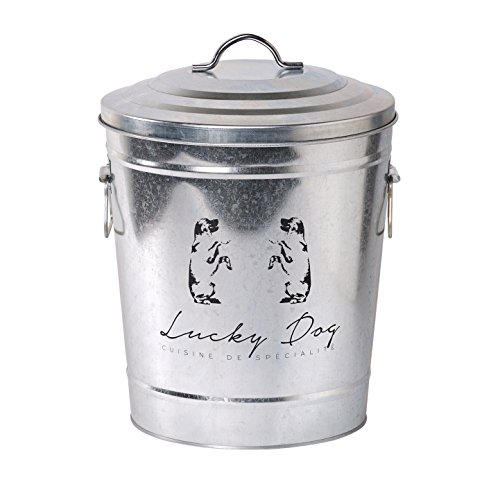 - Constructed from galvanized metal, the Rocky Pet Lucky Dog Metal Bin by Amici Home leads the pack with an astounding 21 pound capacity