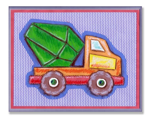 The Kids Room by Stupell Orange and Green Cement Truck on Blue Stripes Rectangle Wall Plaque