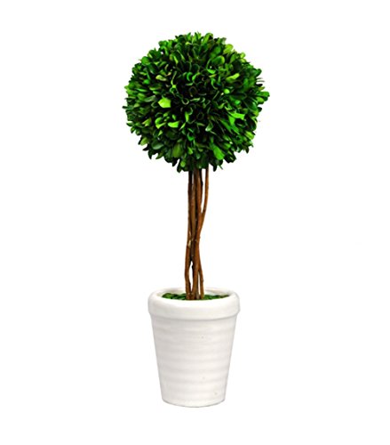 - Boxwood Ball topiary plant with natural twig stem in decorative White pot; measures approximately 16.5-Inches tall