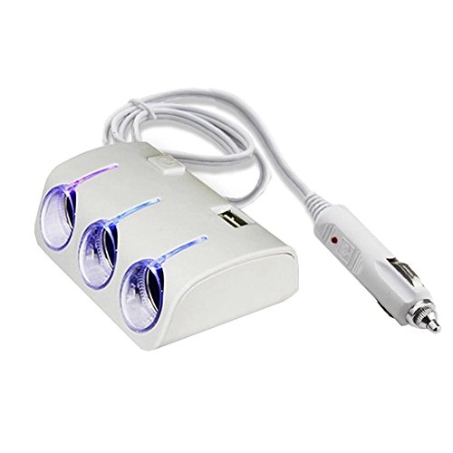 -. Title : MotoCity In-car 3 LED Sockets Cigarette Lighter DC 12V/24V Car Charger Splitter Multiplier + Dual USB Ports for all Apple or Android Smartphones & Tablets. GPS and all Electronic Devices White