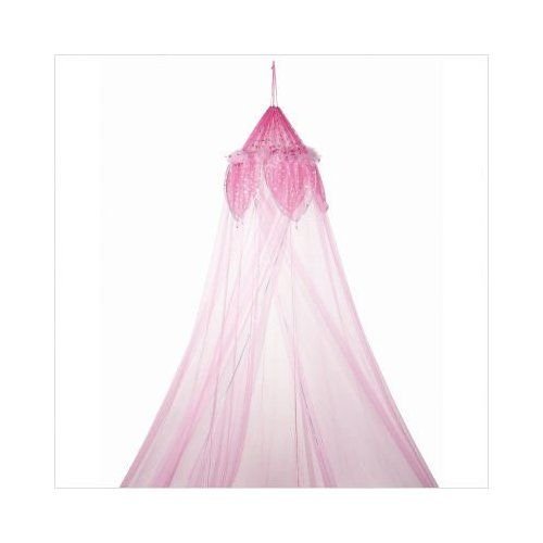 Metallic Moon and Stars Fantasy Bed Canopy with Feather Accent, Light Pink