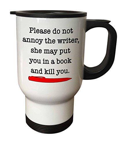3dRose tm_223955_1 Please Do Not Annoy The Writer Red Travel Mug, 14 oz, White