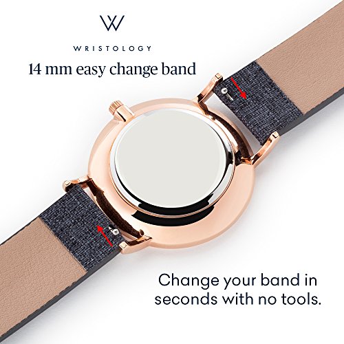 DESIGN - Charlotte features a slim case, simple face and a rose gold metal mesh band that can be easily changed with any WRISTOLOGY 14mm strap to match your style
