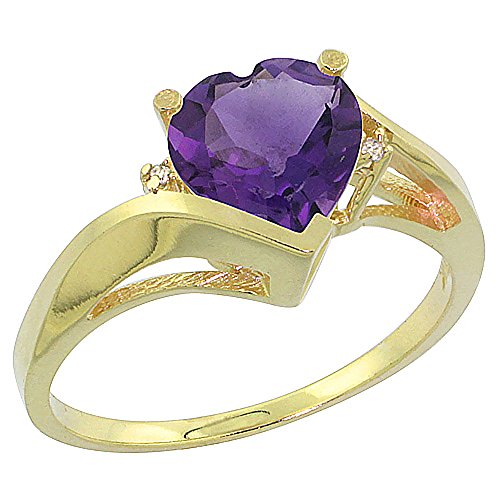 -. Title : 14K White Gold Natural Amethyst Heart Ring 7mm Diamond Accent, sizes 5 - 10