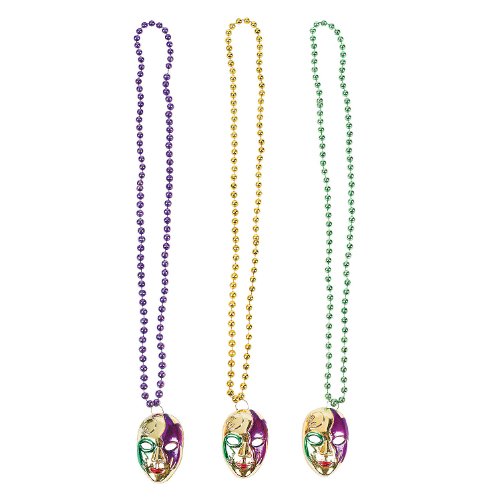Plastic Mardi Gras Necklaces with Mask Charm