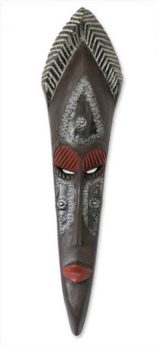 NOVICA Decorative Ghanaian Large Sese Wood and Aluminum Mask, Brown 'Next Of Kin'
