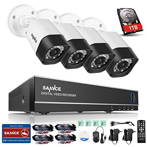 SANNCE 8CH 1080N Security Camera System with 1TB Hard Drive and (4) Night Vision Surveillance Cameras, IP66 Weatherproof , P2P Technology/E-Cloud Service, QR Code Scan Remote Access