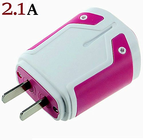 Josi Minea 2.1A Premium USB Wall Charger AC Travel Power Adapter for Apple iPhone 7 & 7 Plus, iPhone 6/6S/SE/5S, Samsung Galaxy S7 & S7 Edge, S6/S5, Note 5/4/3, iPad/iPod [ Hot Pink ]
