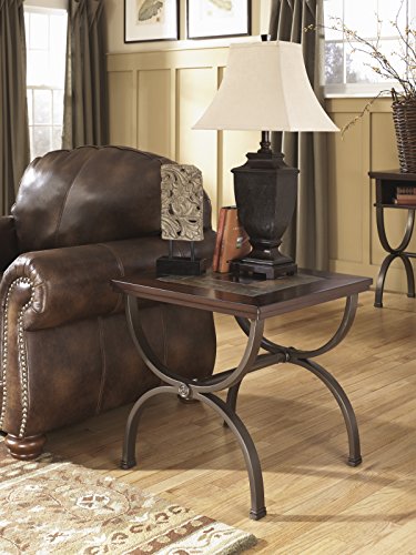 -. Feature : Medium brown finish. Thick framed top made with select birch veneers with natural slate mosaic inlay. / Tubular metal frame finished in an aged bronze color finish. / Home assembly needed / Dimension: 23.88"W x 23.88"D x24.00"H / Photo May Slightly Different From Actual Item in Terms of Color Due to the Lighting During Photo Shooting or the Monitor's Display.