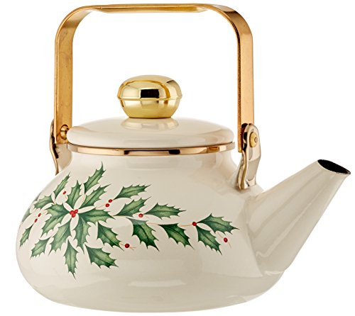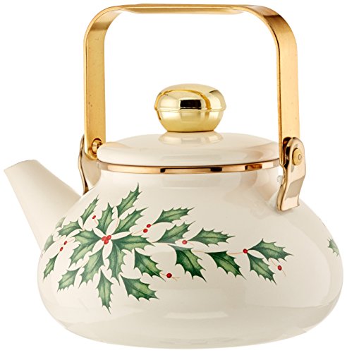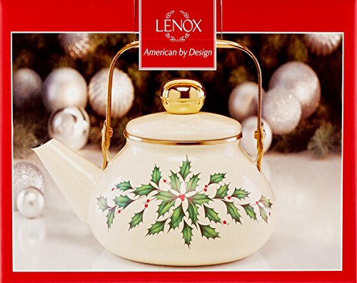 Studio : Lenox Publisher : Lenox Binding : Kitchen Product Description Introduced in 1974, the Lenox Holiday pattern became an instant classic, growing in popularity to become the #1 seasonal dinnerware in America. The iconic holly design combines with the legendary quality that only Lenox can offer to create a collection that has transcended generations to help make the most special time of year even more memorable. Best of all, this legendary collection is created by Lenox, America’s first name in home entertaining, known around the world for offering a unique combination of design artistry and superior quality for over 125 years. The confidence that Lenox has in the unmatched durability of every product they offer is backed by a lifetime breakage replacement policy to guarantee many years of enjoyment to each customer. The Holiday dinnerware holly and berries motif decorates the Holiday Tea Kettle. Crafted of sturdy aluminum, this lovely tea kettle has a carved wooden handle for ease of pouring. Add a touch of holiday decorating to your kitchen and your dinner table with the Holiday teakettle. Makes a wonderful gift. 0