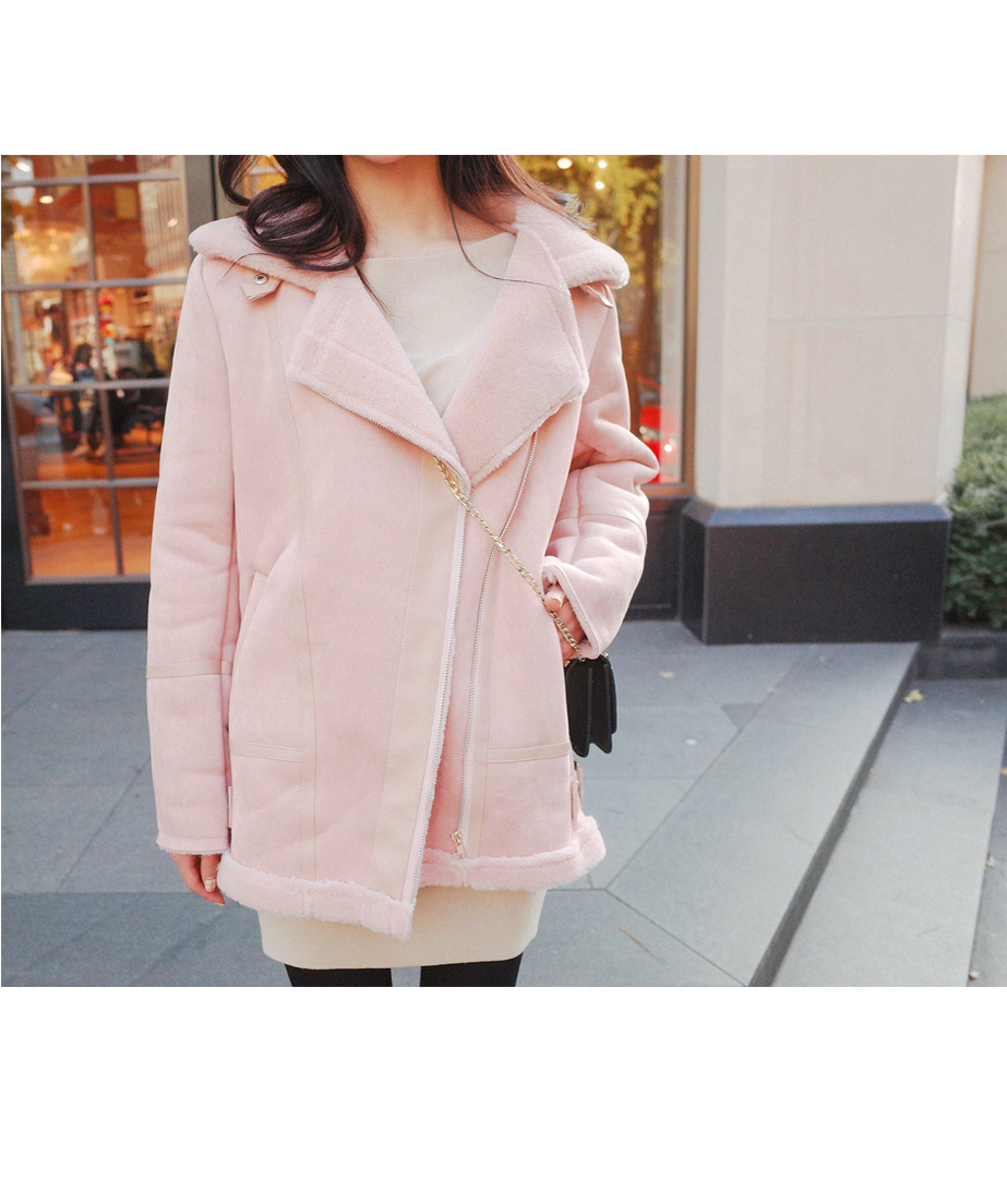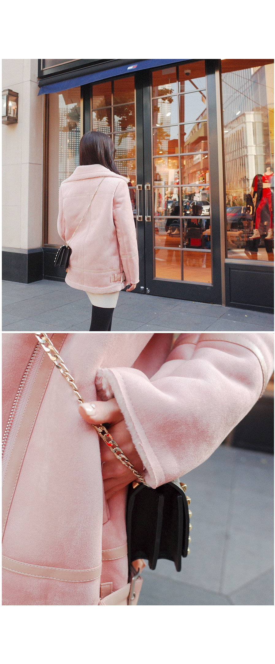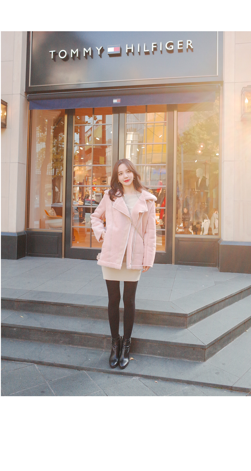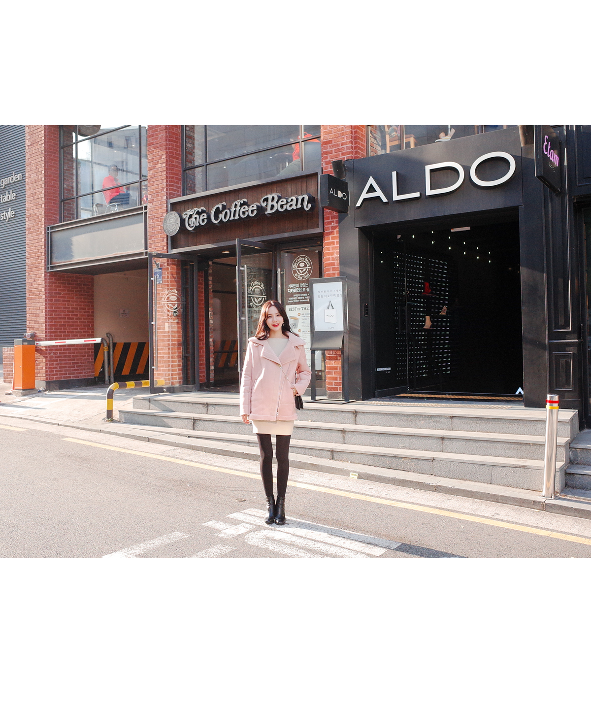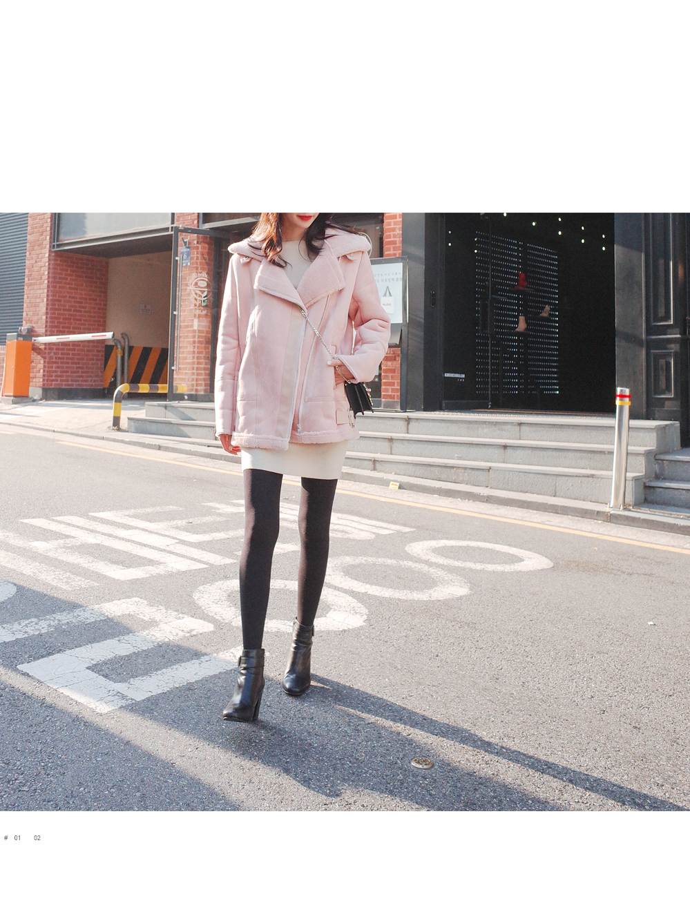 달달한 핑크컬러로 여성스러운 매력이 돋보이는 무스탕이에요