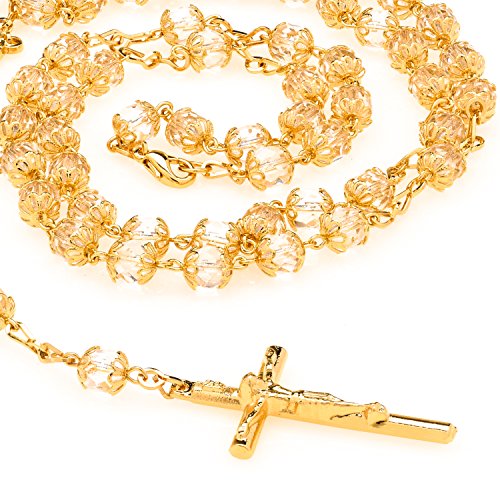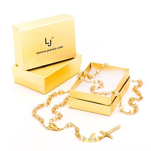 -. Title : Best Rosary Necklace, Clear Crystal Prayer Beads, 24K Gold Overlay Catholic Crucifix and Virgin Mary Center, Tarnish-Resistant, by Lifetime Jewelry (28")