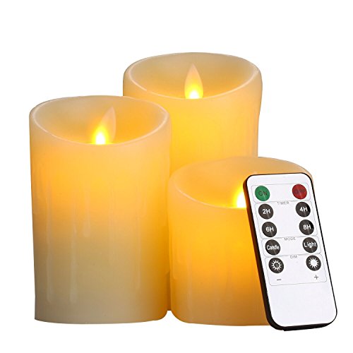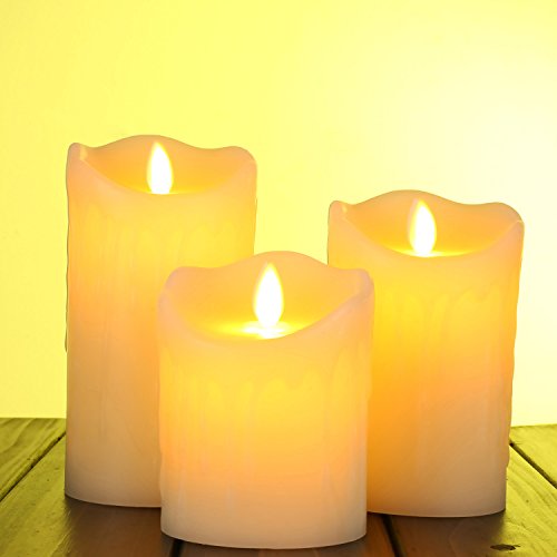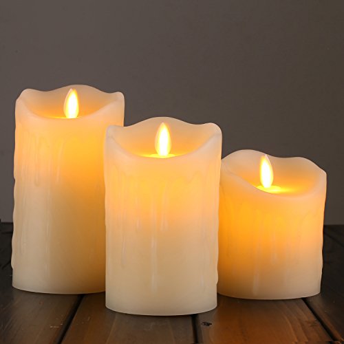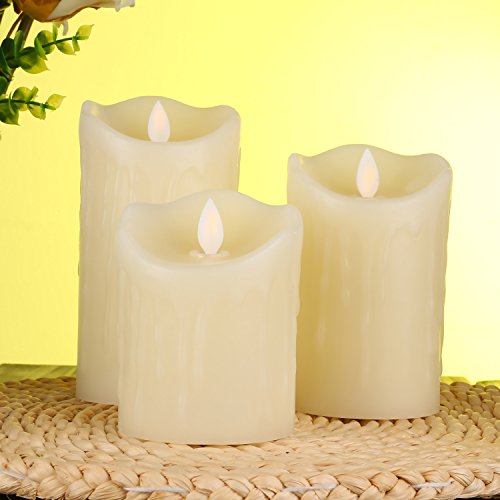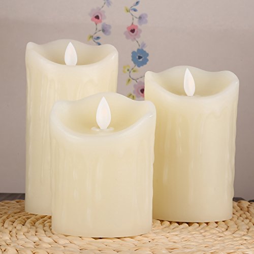 Cefun Flameless Candles LED Candles Tear Wave Shaped Candles Battery Operated Candles Pillar Candles with 10-key Remote Timer, Height 4" 5" 6", Set of 3, for Wedding and Romantic Parties Ivory White