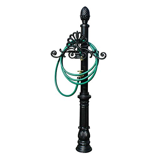 Qualarc FPST-HHLD-HOSE-703-BL Cast Aluminum Faucet Post, Ornate Base and Pineapple Finial, Black, Ships in 2 boxes