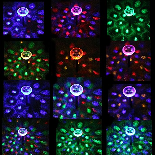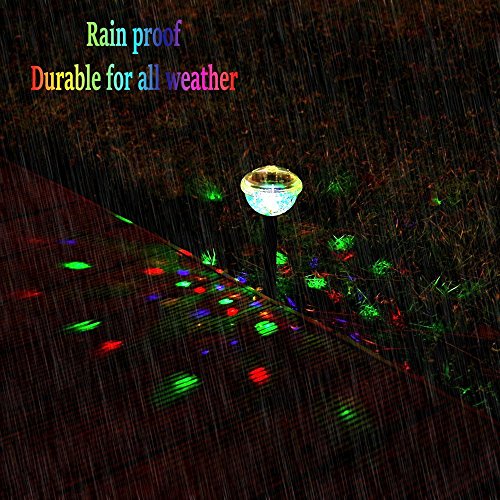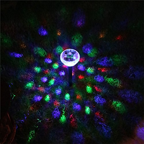 - 【FIFTEEN PATTERNS】: Solar light garden, with 4 LED, disco lens generates vivid pattern, made up of different colors combinations, including green, red, blue, yellow provide more than 15 automatical shining.