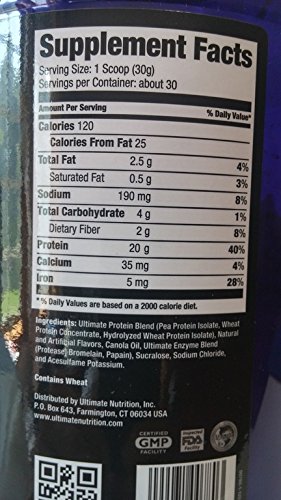 Delicious Ultimate Nutrition Protein Isolate 2 is a combination of two different vegetable proteins, derived from wheat and peas, which have different absorption rates. This extended release blend provides your body with high-quality nutritional support over an extended periods of time. All the Essential Amino Acids With the addition of pea protein isolate, Ultimate Nutrition® Protein Isolate 2 offers a more complete and balanced amino acid profile, including all the essential amino acids and plenty of naturally-occurring BCAAs. Suitable for Vegans. No Animal Anything! Ultimate Nutrition Protein Isolate 2 provides the benefits of dairy proteins, but contains no lactose, no cholesterol, and no saturated fat. And to help digest gluten, Protein Isolate 2 includes three digestive enzymes: protease, bromelain and papain, all of which are derived from non-animal sources. Wheat protein isolate is high in glutamic acid, an anti-catabolic nutrient that reduces muscle soreness after exercise.Feature