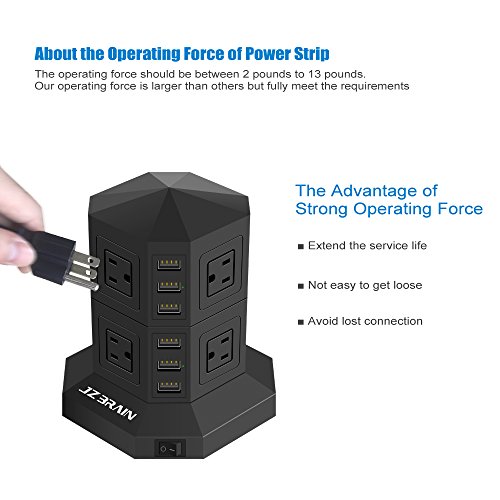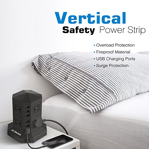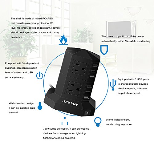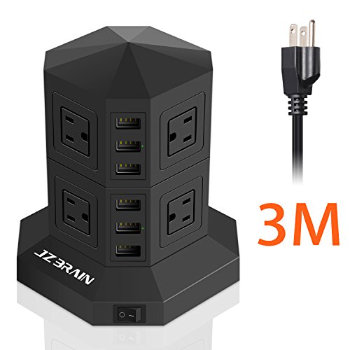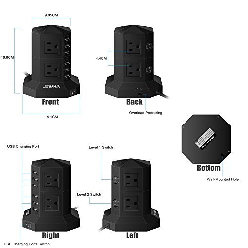 JZBRAIN 8-Outlet 6-USB Power Strip Surge Protector Power Socket Strip 9.8ft Cord Black