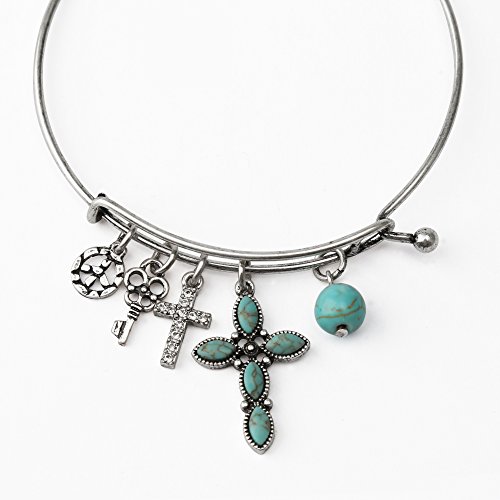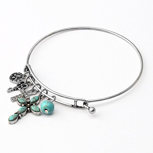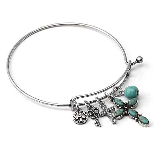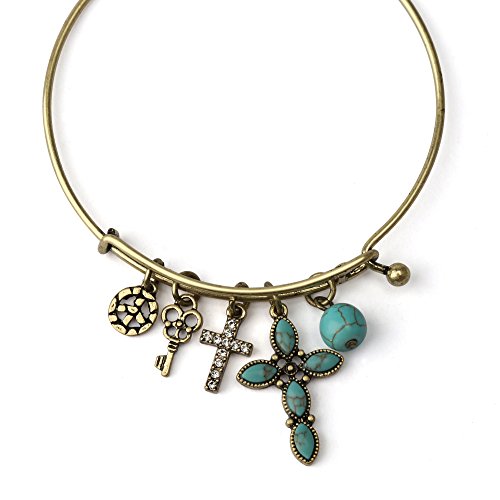 -. Title : Komene Antique Copper Cross Expandable Charm Bangle Adjustable Wire Bracelet Adorn with Swarovski Crystal