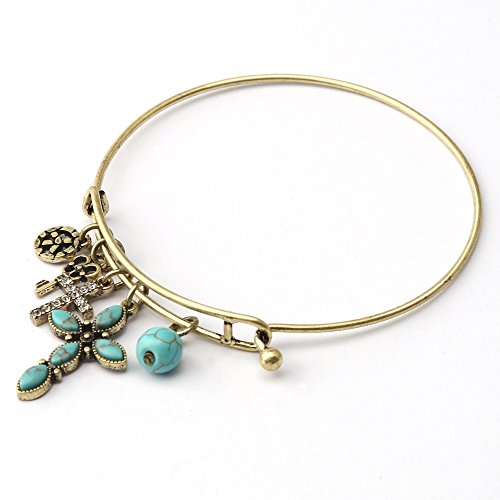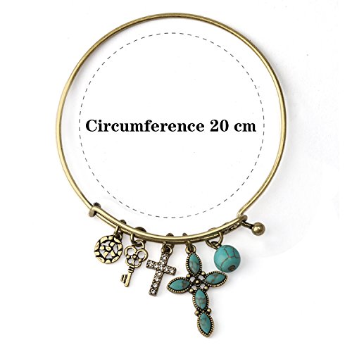 -. Feature : Metarial:Made of High-end environmental copper.The stone is Natuarl Turquoise.Diomand is Swarovski Crystal. / Measurements: The bracelet is connected in a hook and two clasps and can be adjust the size.Expanded open to fit most wrists.Inner Diameter of The Bangle:2.48 inch, Adjustable Size:0.23 inch. / Old Golden and Old Silvery are available. Own vintage style,attractive designs and fine workmanship. / Come in a Brand jewelry gift box. Perfect gift for Christmas Day, Anniversary Day, Valentines Day and Birthday to your girlfriend, wife, mom,friend and everyone you love. / A perfect accessory to your outfit or as an approP.R.Iate gift. This exquisite jewelry gives you a totally fresh impression. Just be happy to add this beautiful necklace to your jewelry collection.