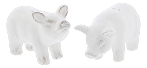 Drew DeRose Rustic Farm Pigs White Ceramic Salt & Pepper Shaker Set